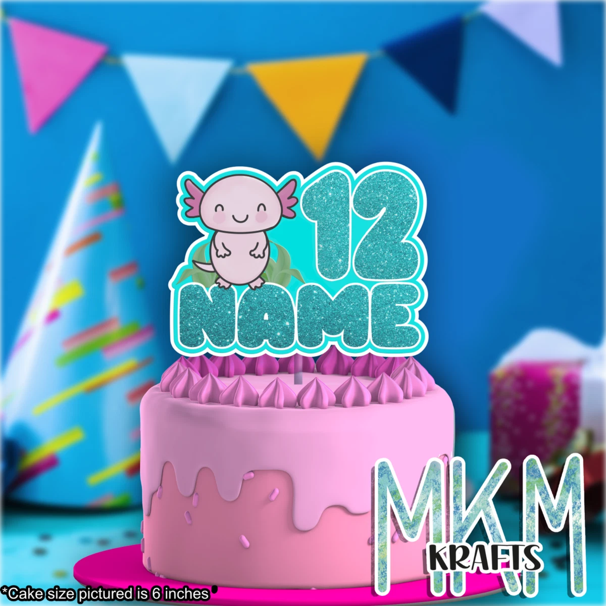 Axolotl Cute Pink And Blue Card Birthday Cake Topper Any Name And Age Ebay